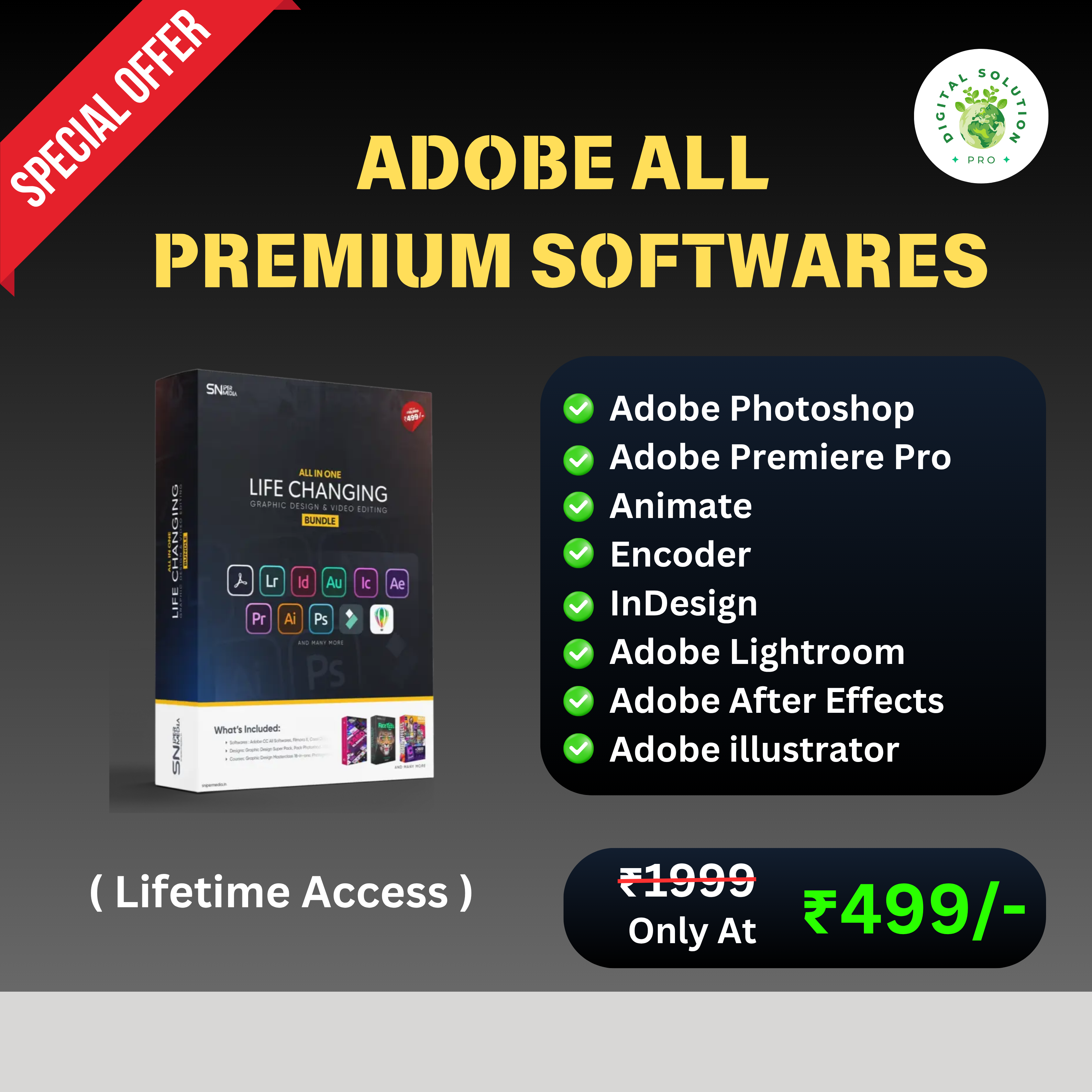 Complete Adobe Creative Suite with lifetime access to all premium software including Photoshop, Premiere Pro, After Effects, and more.
