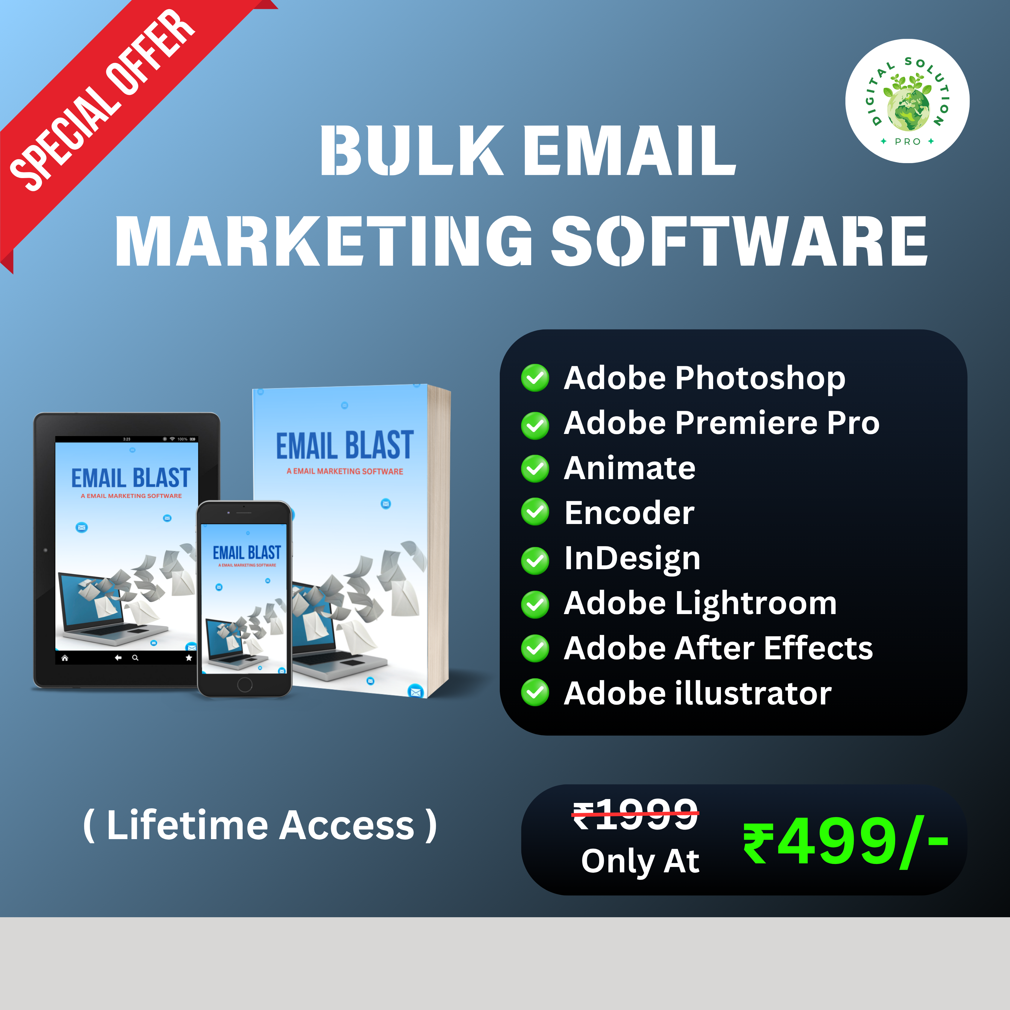 Professional email marketing software 'Email Blast' with Adobe Creative Suite for creating stunning email campaigns and marketing materials.