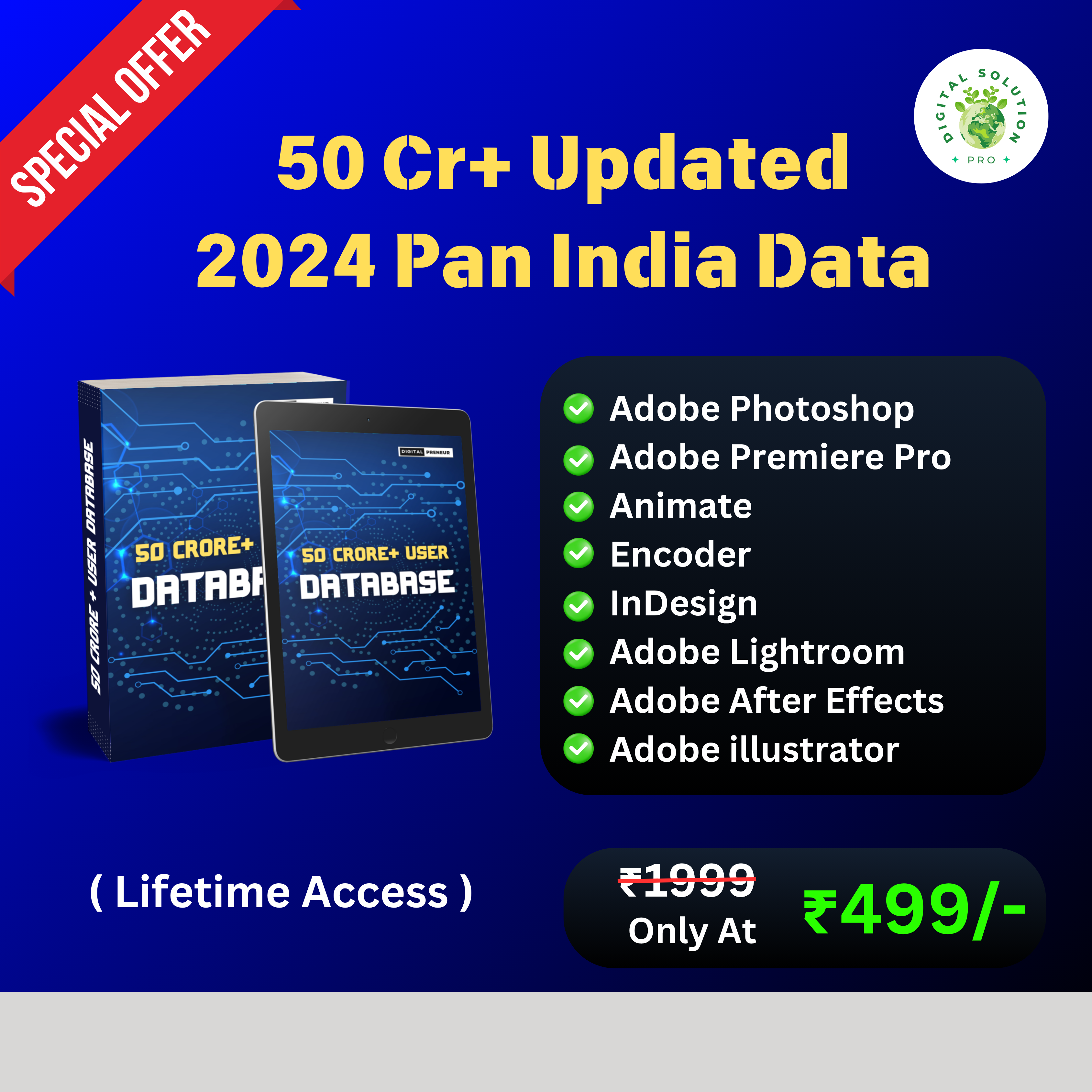 Massive database of 50+ crore updated Indian contacts for 2024. Perfect for marketing, lead generation, and business development with Adobe tools included.